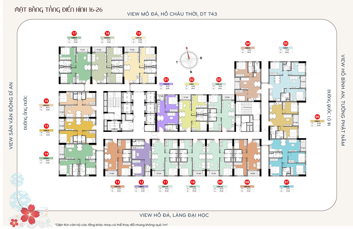 Diện tích: 35 – 76m²